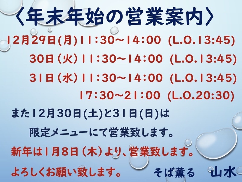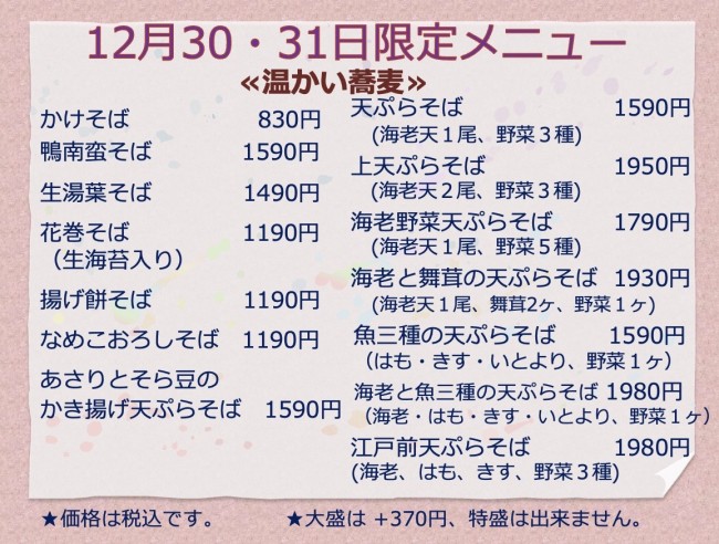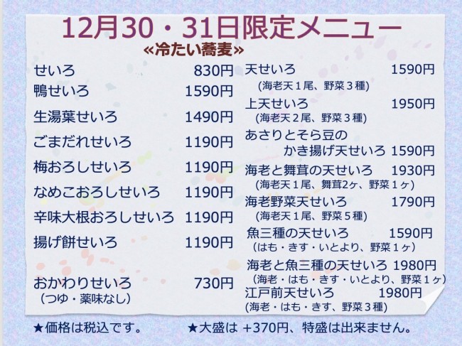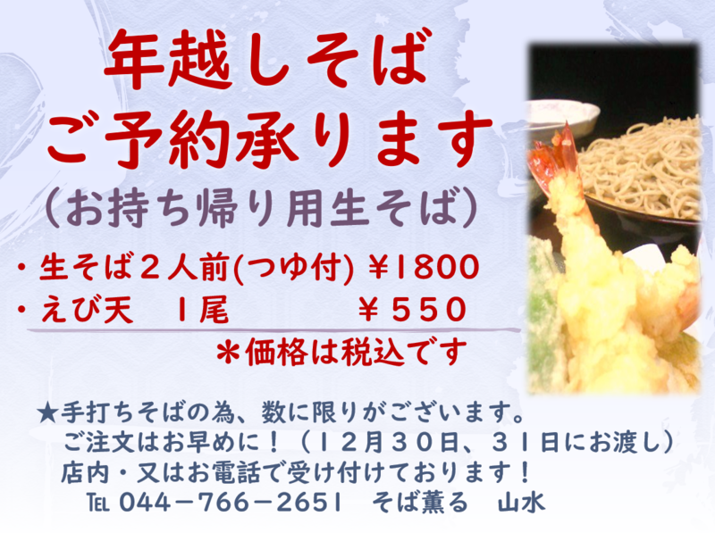 年越しそばの受付終了しました。